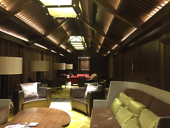 休息室,利用灯光的颜色、投射方式和不同明暗亮度可创造出立体感、层次感,不同色彩的环境气氛,不仅使客人有个舒适的居住环境,而且还可以产生一种艺术欣赏感,对酒店产生留连忘返之感。