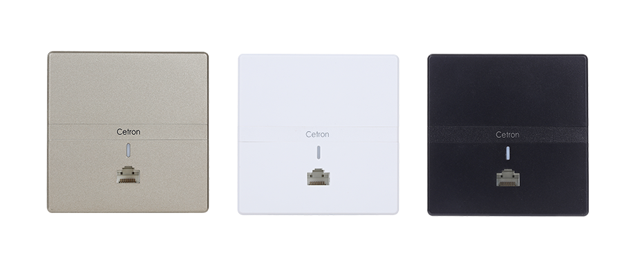 Cetron AP1000正面板凸出墙面厚度仅为10mm,是目前我司最薄的千兆双频86型面板AP。它支持5GHz频段,可以减少同频干扰,提升接入质量,提升榴莲APP色版家居系统的运用体验。同时思创采用86型面板设计,让AP既美观又安装方便。